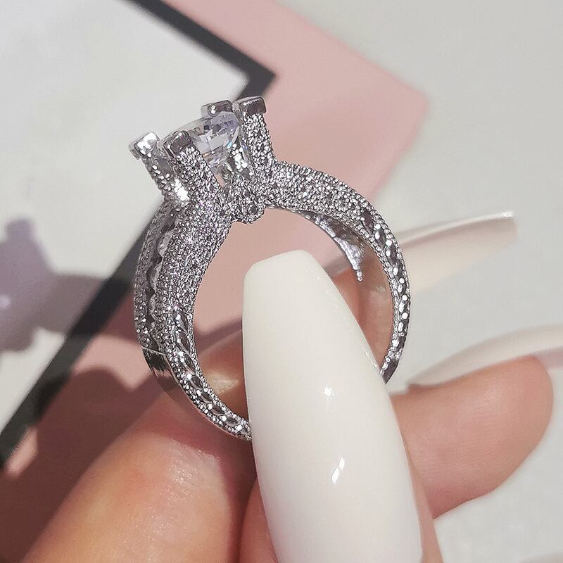 送料無料 2022年ラグジュアリーハローシルバーカラーデザイナー婚約指輪女性アニバーサリーギフトジュエリー一括販売R6055 リング 銀 アクセサリー AE00116641873158721