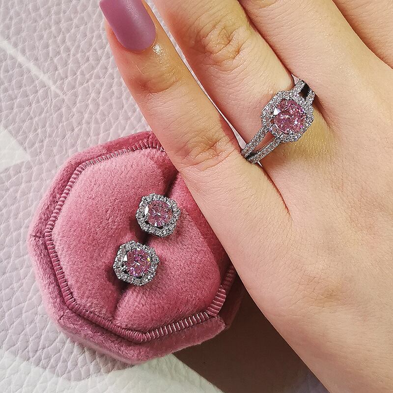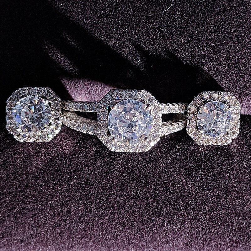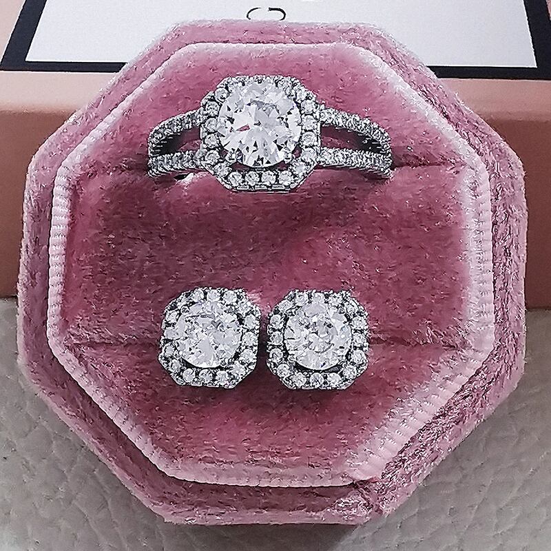 送料無料 2ピースパックシルバーカラー花嫁ジュエリーセットハロー婚約指輪ラウンドスタッドピアスウェディングJ4946 イヤリング リング 銀 アクセサリー AE00116698963677401