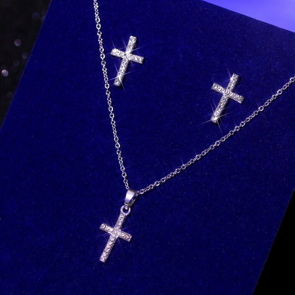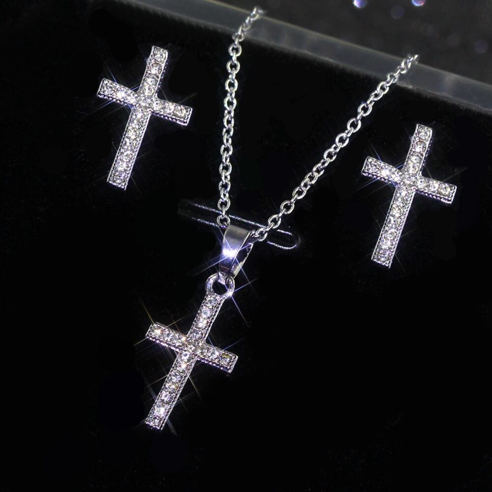 送料無料 2022年十字架シルバーカラー花嫁ウェディングジュエリーセット女性アニバーサリーギフトジュエリーJ6464 銀 アクセサリー AE00116643522858452