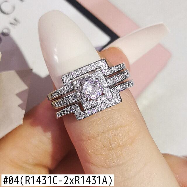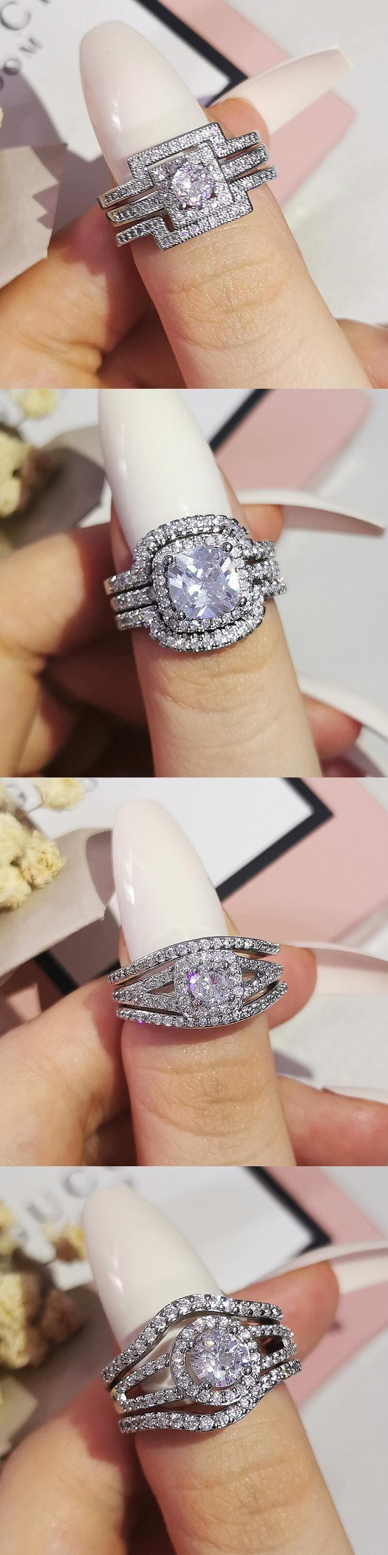送料無料 2022ラグジュアリー3個3イン1シルバーカラーエンゲージメント結婚指輪セット女性ブライダルカップルアフリカンジュエリーR4308 リング 銀 アクセサリー AE00116678342079716
