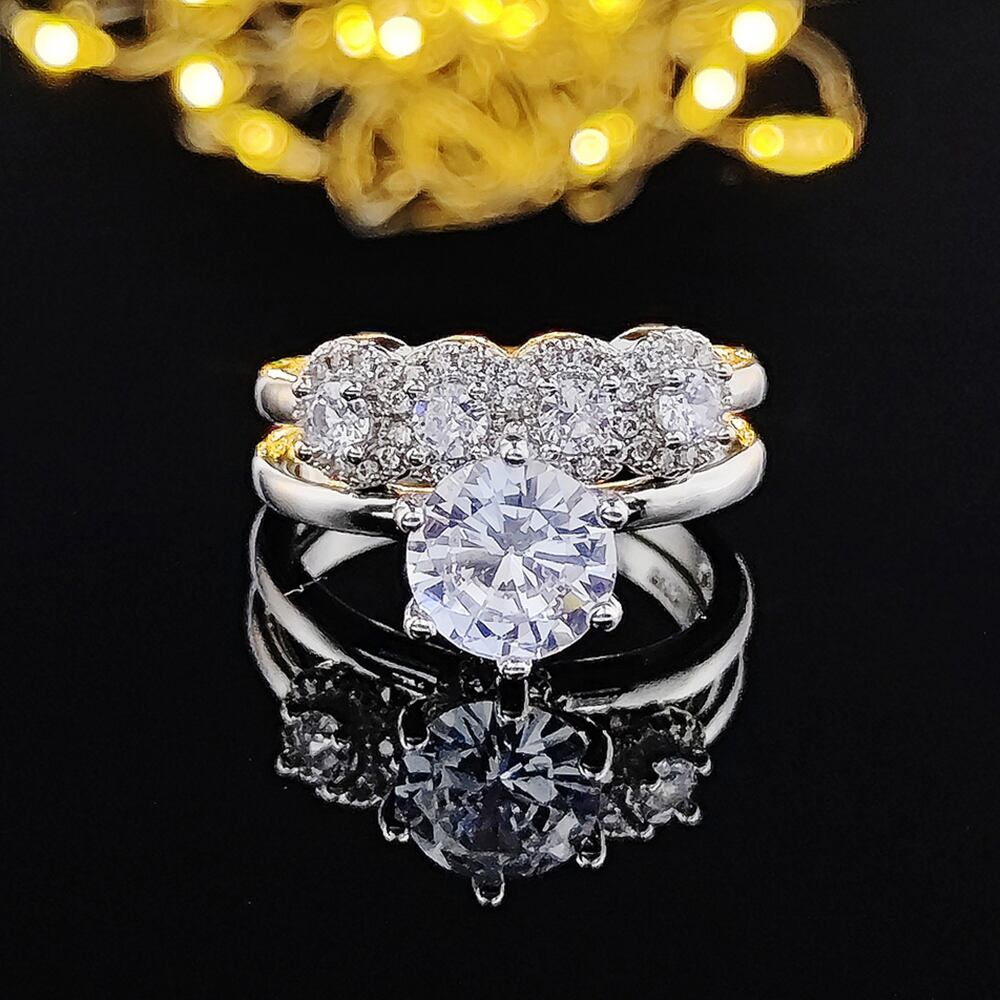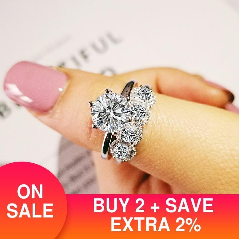 送料無料 2022年の新しい豪華なラウンドシルバーカラーの花嫁の結婚指輪セットの女性の女性の記念日ジュエリーのバルク販売ブラックフライデーR5139 リング 銀 アクセサリー AE00116669072162525