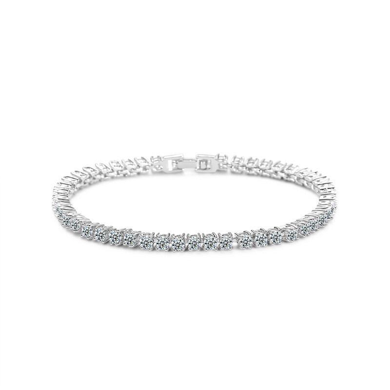 送料無料 ゴールドシルバーカラー3mmキュービックジルコニア18cmテニスバングルブレスレットレディースウェディングラグジュアリークリスマスギフトジュエリーS4776 銀 風信子石 アクセサリー AE00116623784307357