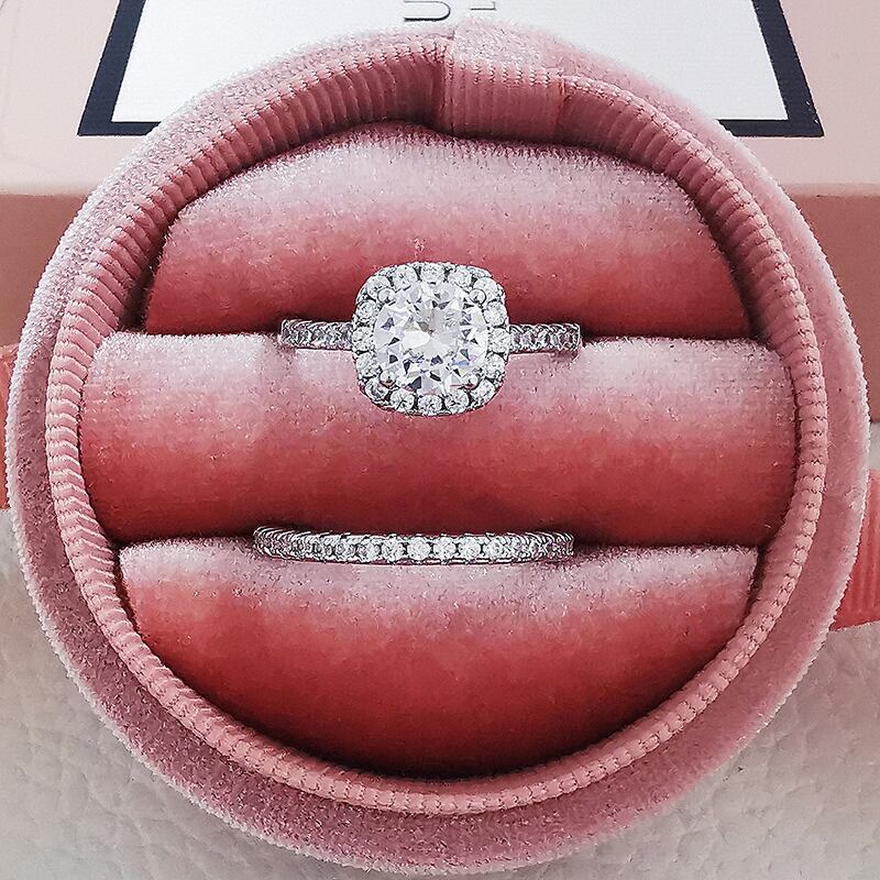 送料無料 2022シルバーカラー花嫁クッションカットフィンガーリングセット女性ジュエリーピュアウェディングエンゲージリングパーソナライズR6008 指輪 銀 アクセサリー AE00116645228010083