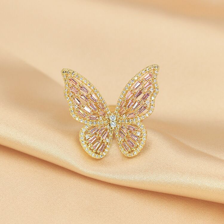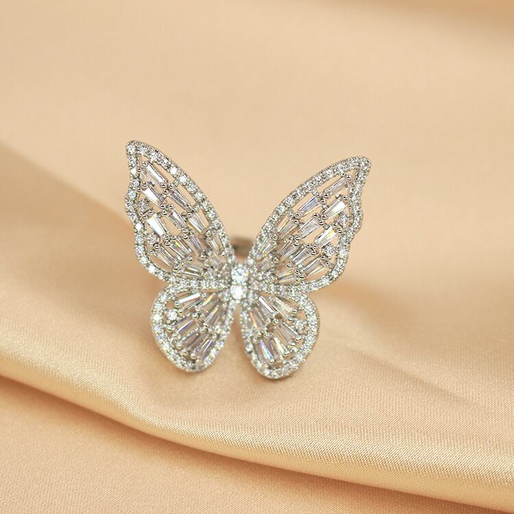 送料無料 2022ピンクゴールドシルバーカラーバタフライリングリング調節可能な女性のパーティーギフトジュエリーR7146 アジャスタブル 指輪 銀 アクセサリー AE00116642187913227