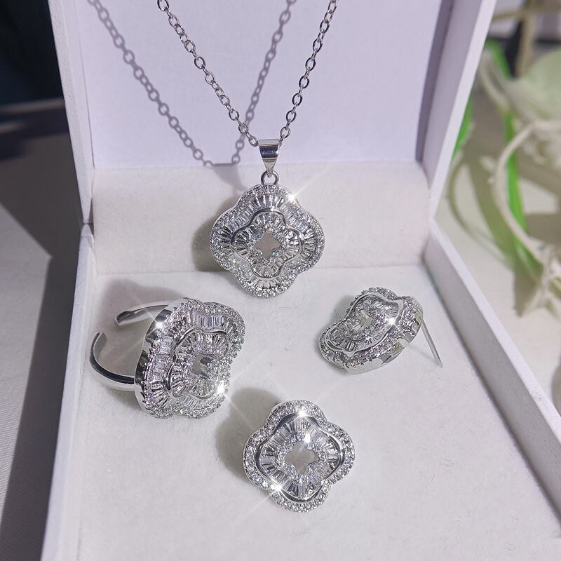 送料無料 3ピースパック2022ラグジュアリーシルバーカラー花嫁アフリカンジュエリーセット女性アニバーサリーギフトジュエリーJ6137 銀 アクセサリー AE00116622231781409