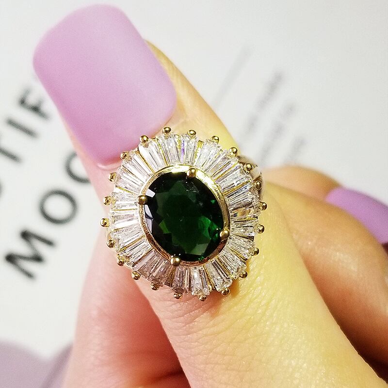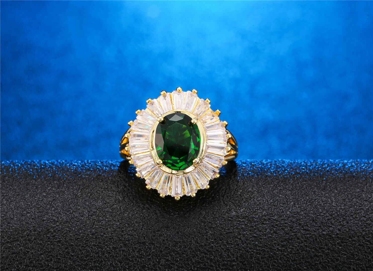 送料無料 2022ラグジュアリーグリーンゴールドカラーオーバルエンゲージリングレディースレディビジネスアイテムジュエリーR5064 指輪 アクセサリー AE00116621290936057