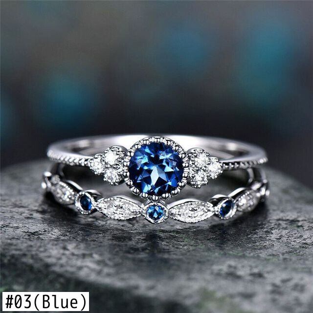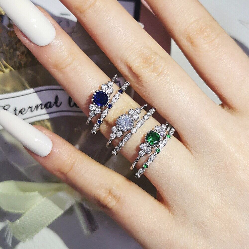 送料無料 ヴィンテージブルーグリーンカラーハローシルバーカラー花嫁結婚指輪セット女性レディアニバーサリーギフトジュエリーバルクセルR5721 リング 銀 ビンテージ アクセサリー AE00116669197237487