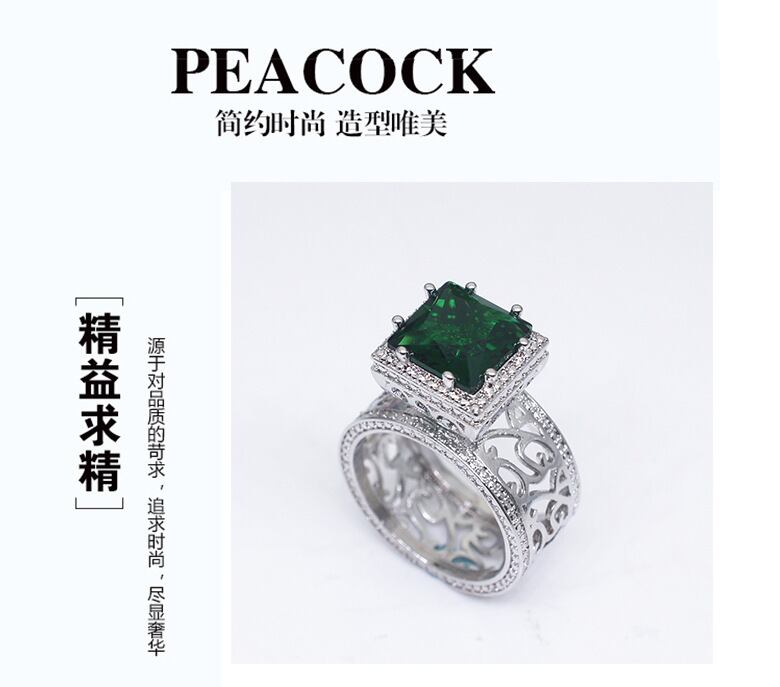 送料無料 シルバーカラーデザイナーグリーンプリンセスカットキュービックジルコン婚約指輪女性の結婚式誇張されたビッグブランドパーティーr4988 リング 銀 アクセサリー AE00116686083469010