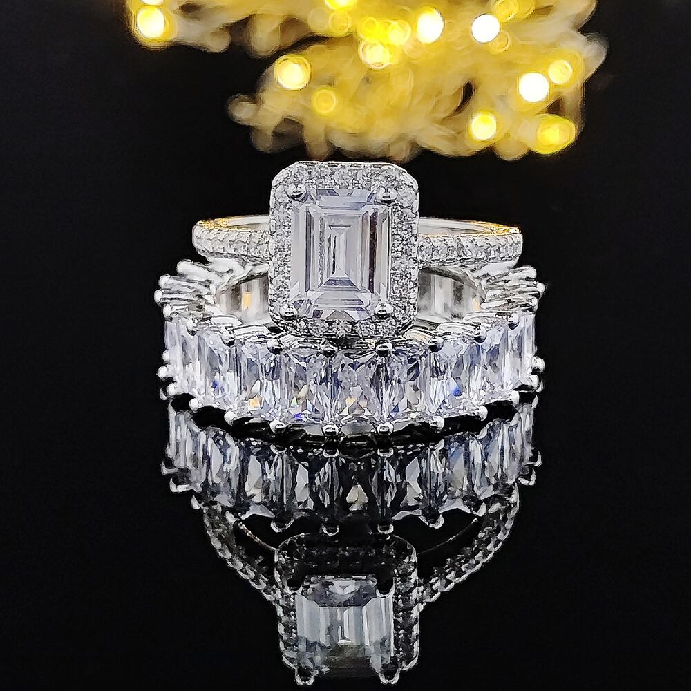 送料無料 ホットラグジュアリーシルバーカラー花嫁結婚指輪セット女性レディアニバーサリーギフトジュエリー リング 銀 アクセサリー AE00116664935494336