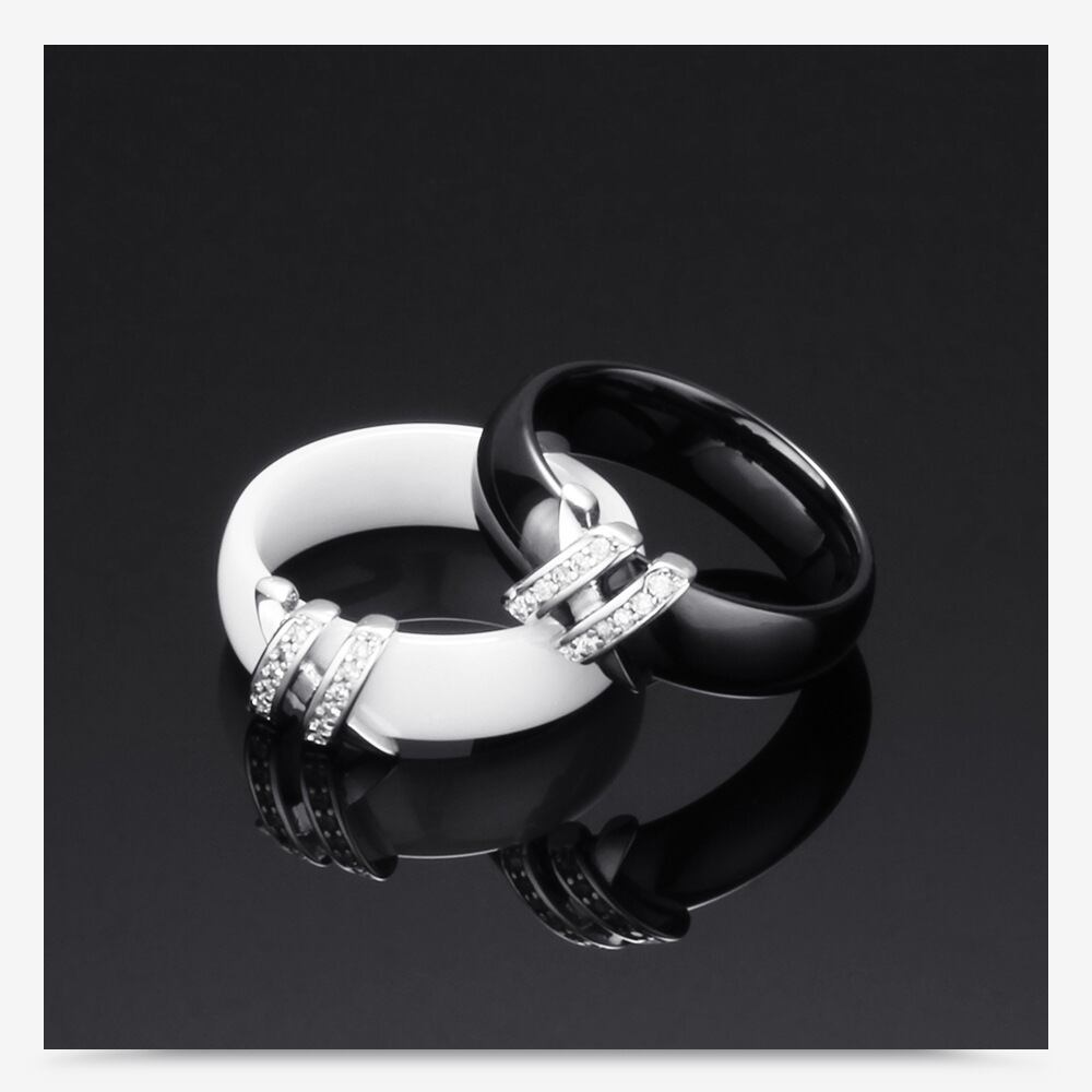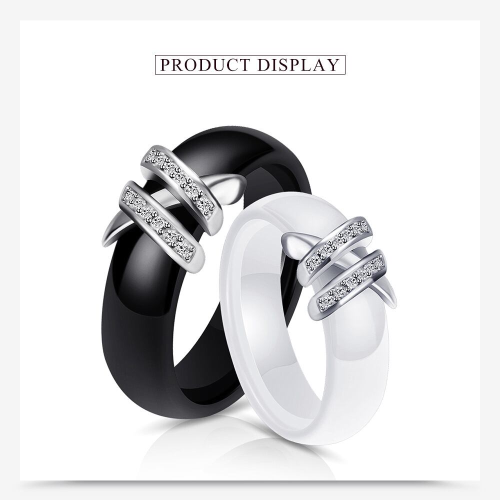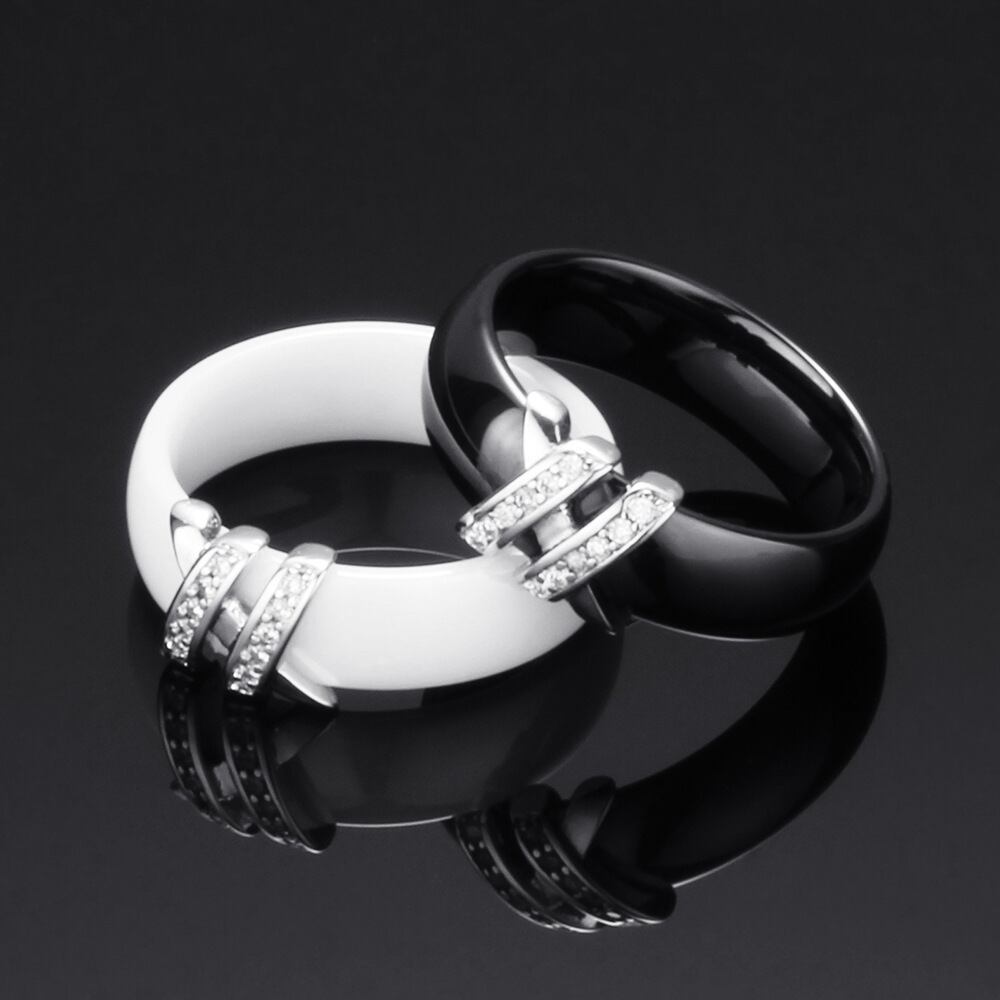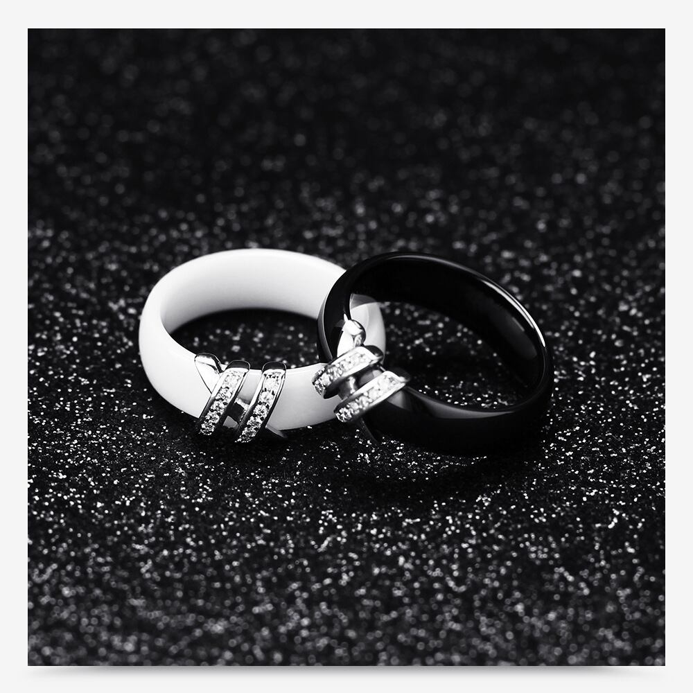 送料無料 2022年トレンディなセラミックホワイトブラックカラー婚約指輪女性レディアニバーサリーギフトジュエリー リング アクセサリー AE0011669515673786