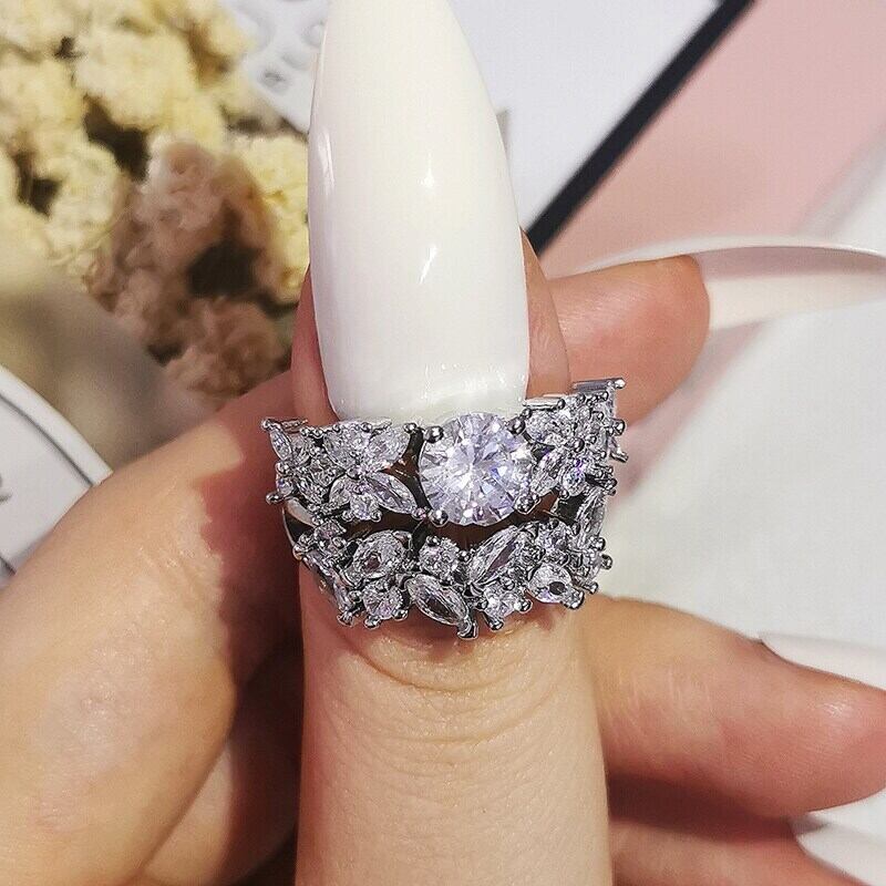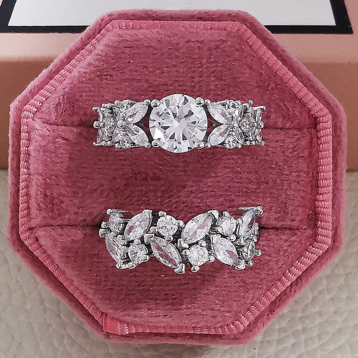 送料無料 2022年新しい高級ハローシルバーカラー花嫁結婚指輪セット女性女性記念日ジュエリー卸売R6392 リング 銀 アクセサリー AE00116654122188844