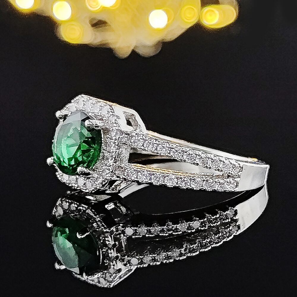 送料無料 シルバーカラー花嫁結婚指輪セット女性花嫁ブライダル婚約ジュエリーバンド永遠アフリカナイジェリアガーナR4863-緑 リング グリーン 銀 アクセサリー AE00116653499908445