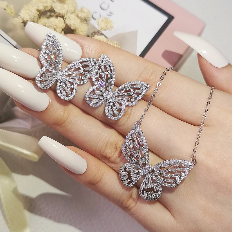 送料無料 2個パック2022ラグジュアリーバタフライシルバーカラー花嫁ドバイ結婚記念日レディアニバーサリーギフトジュエリー一括販売J6341 銀 アクセサリー AE00116681687391698