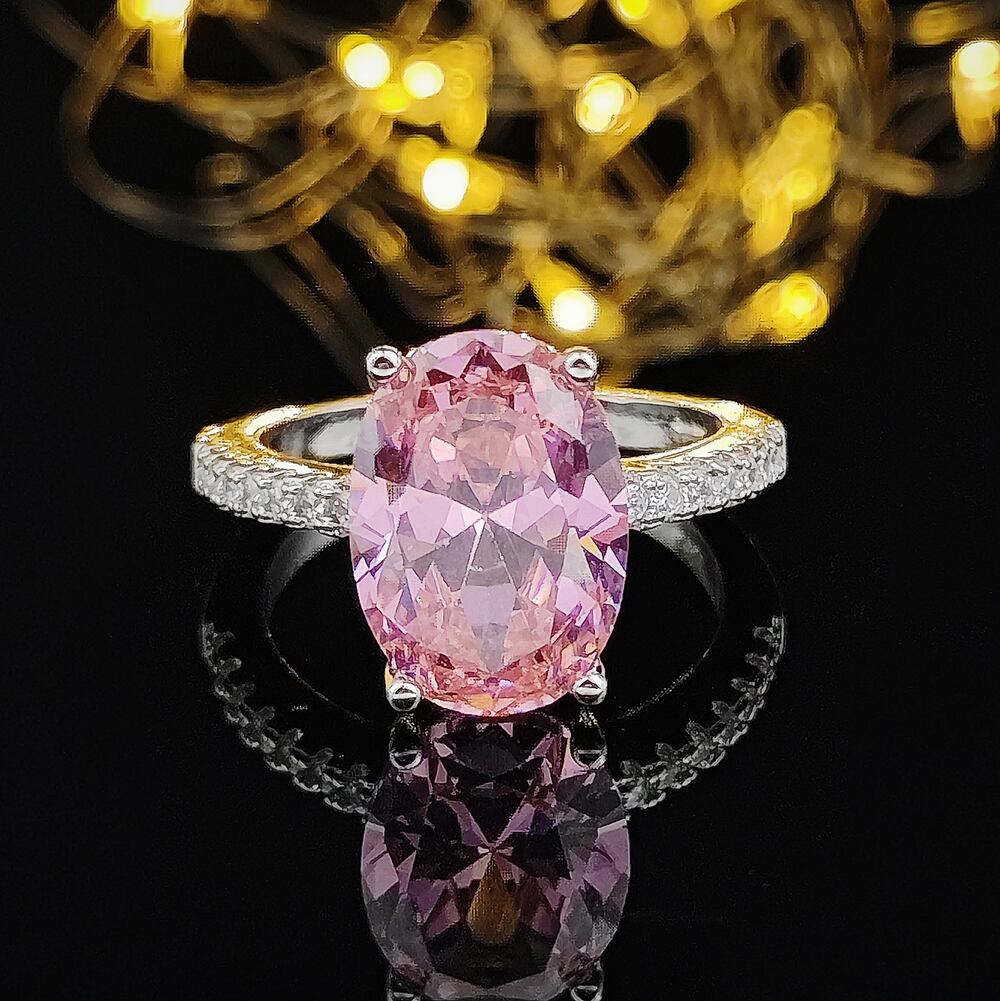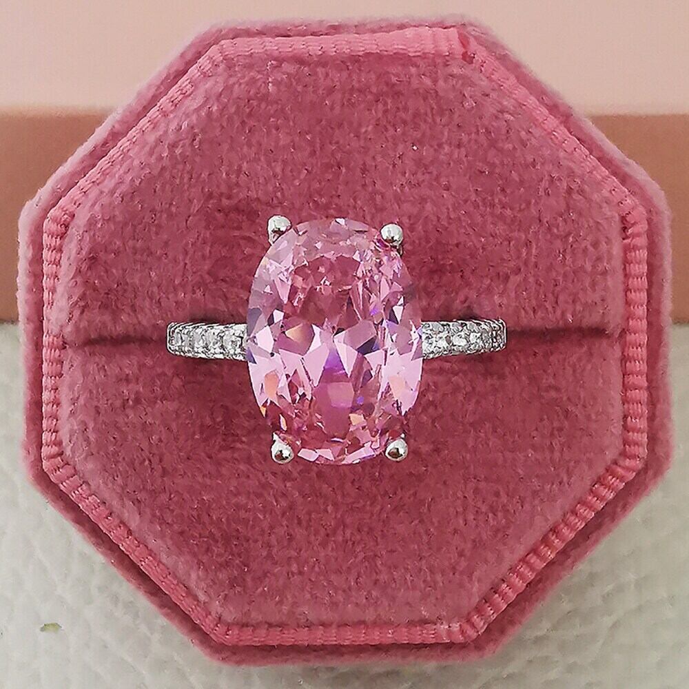 送料無料 シルバーカラー花嫁オーバル結婚指輪セット女性の婚約高級バンドエタニティジュエリー配送クリックビッグR4947-ピンク リング 銀 アクセサリー AE00116660131364806