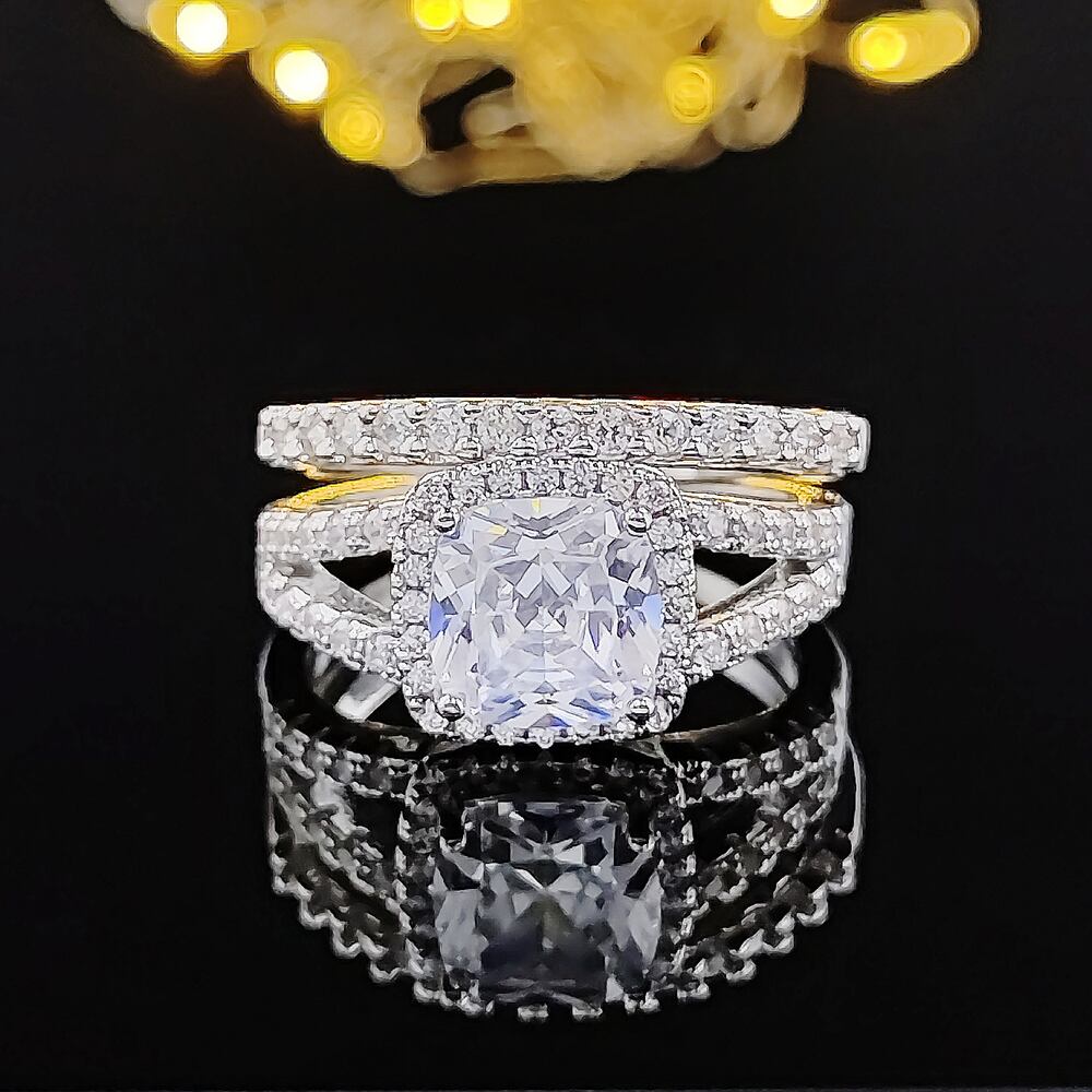 送料無料 2022年新しいクッションシルバーカラー花嫁結婚指輪セット女性女性記念日ジュエリー卸売ブラックフライデーR6996 リング 銀 アクセサリー AE00116688683086039