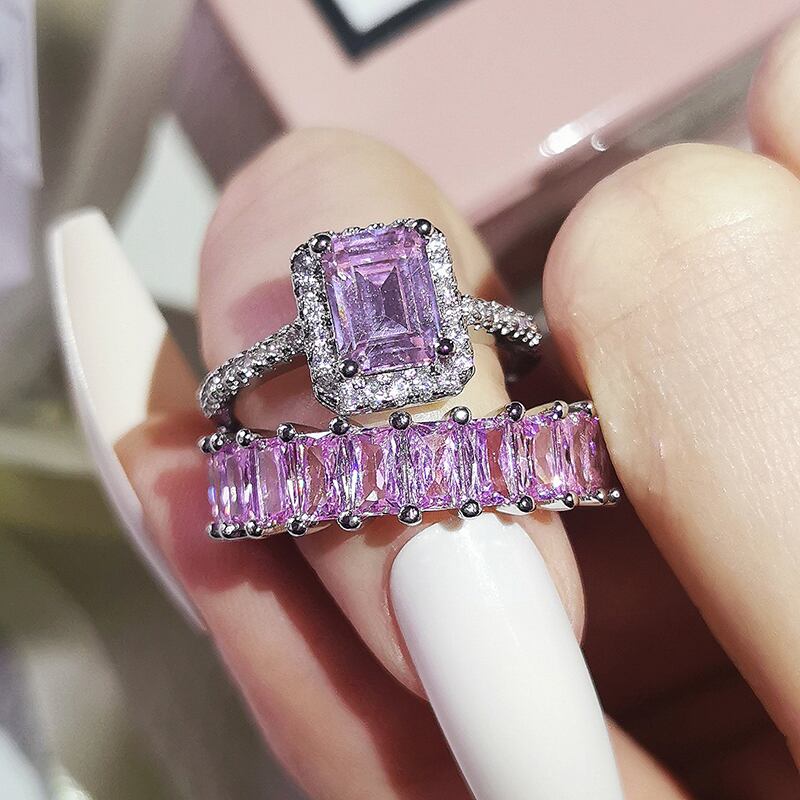 送料無料 ホットラグジュアリーシルバーカラー花嫁結婚指輪セット女性レディアニバーサリーギフトジュエリー リング 銀 アクセサリー AE0011669642263307