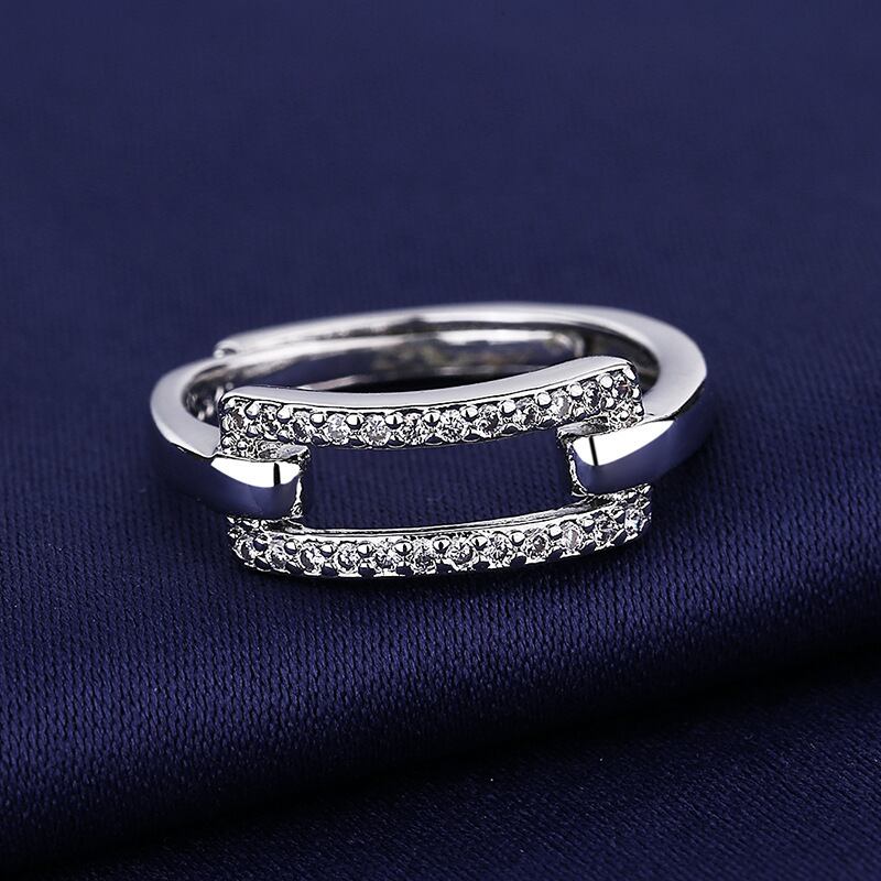 送料無料 2022トレンディな長方形中空シルバーカラーかわいいオープンリング女性パーティーギフトジュエリーR6820 大人ガーリー スウィート キュート カジュアル 指輪 銀 アクセサリー AE00116629105403276