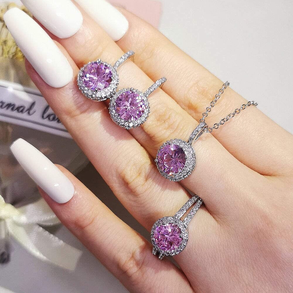 送料無料 3ピースパックシルバーカラー花嫁ジュエリーセットハロー婚約指輪ラウンドスタッドピアスウェディングJ7328 イヤリング リング 銀 アクセサリー AE00116677437934649