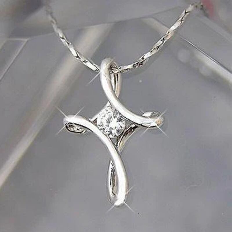 送料無料 2022年トレンディなクロスジルコンペンダントネックレスシルバーカラーネックウィメンズアニバーサリーギフトジュエリーX6783 レース 銀 アクセサリー AE00116691154250013