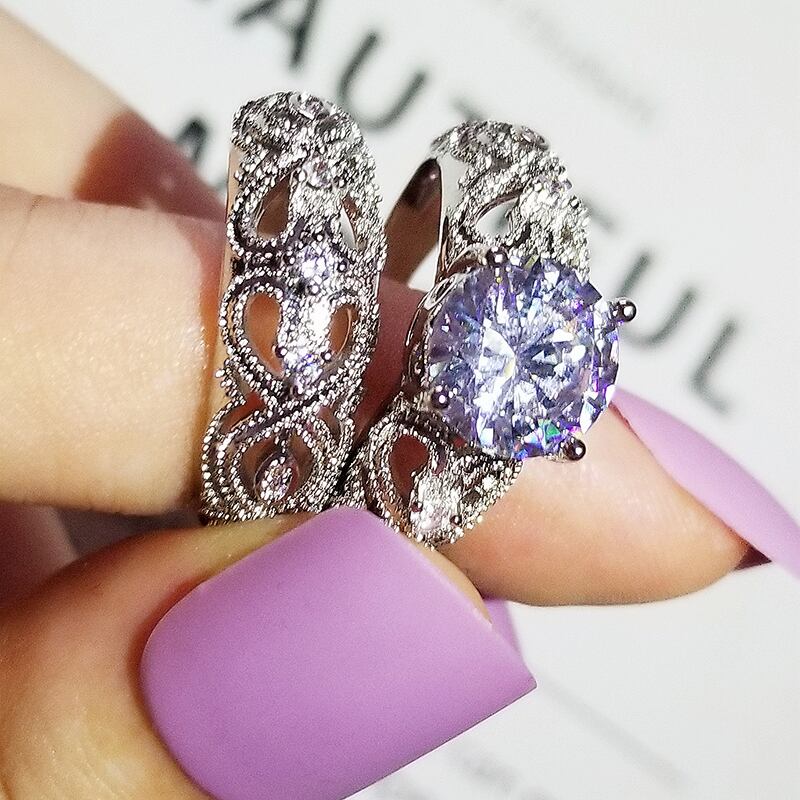 送料無料 2022年ラグジュアリーラウンドシルバーカラー花嫁結婚指輪セット女性レディアニバーサリーギフトジュエリーR5861 リング 銀 アクセサリー AE00116635859700061