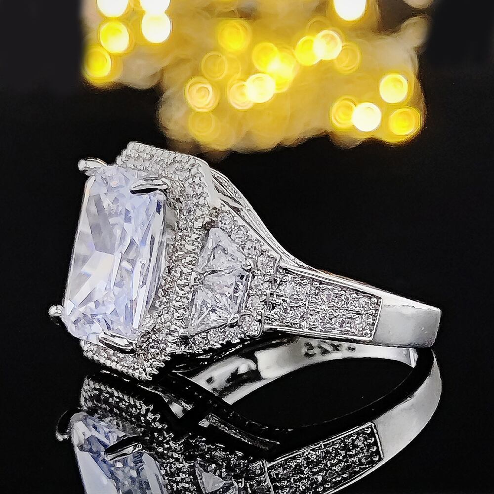 送料無料 2022年高級長方形シルバーカラーデザイナー婚約指輪女性アニバーサリーギフトジュエリーR6858 リング 銀 アクセサリー AE00116685971753508