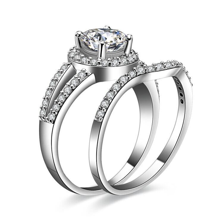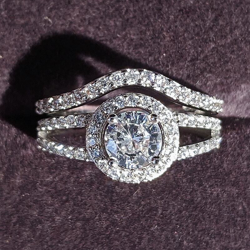 送料無料 ブラックフライデーラグジュアリー本物のシルバーカラーの花嫁リングセットバンドの女性の結婚式の婚約BRIDALジュエリーパーソナライズされたR235 指輪 銀 天然 アクセサリー AE00116648890105055
