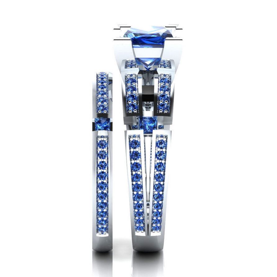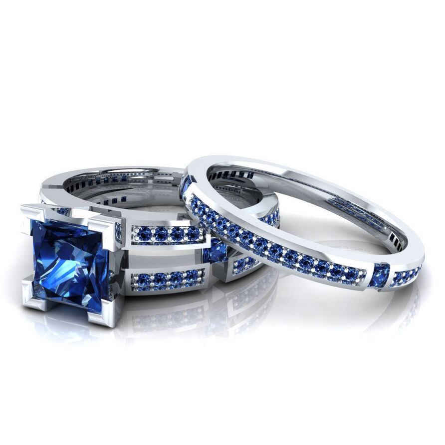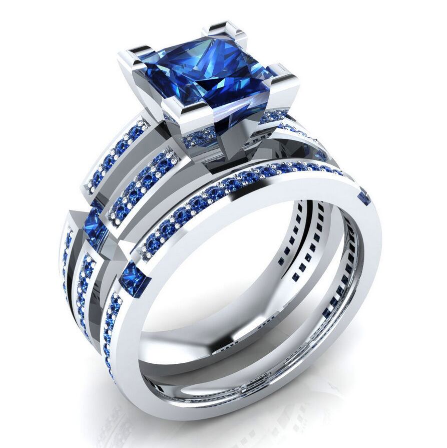 送料無料 2022ラグジュアリーブルーカラーシルバーカラー花嫁結婚指輪セット女性レディアニバーサリーギフトジュエリー一括販売R5862 リング 銀 アクセサリー AE00116643525721546