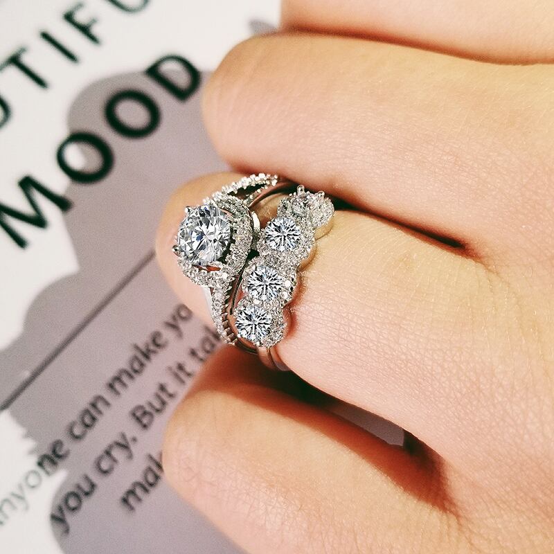 送料無料 2019新しい高級ラウンドシルバーカラー花嫁結婚指輪セット女性女性記念日ジュエリー卸売ブラックフライデーR5134 リング 銀 アクセサリー AE00116616836306247