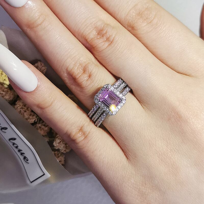 送料無料 シルバーカラーの花嫁のウェディングリングセット3in1バンドリング女性の婚約ブライダルジュエリーフィンガーR1997x-ピンク 指輪 銀 アクセサリー AE00116672384614383