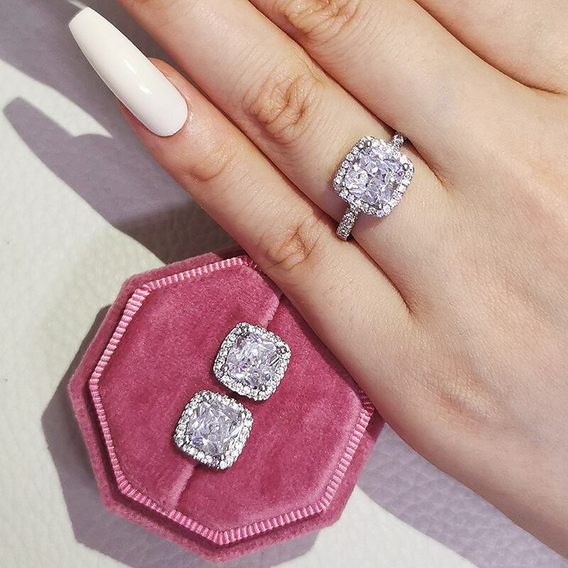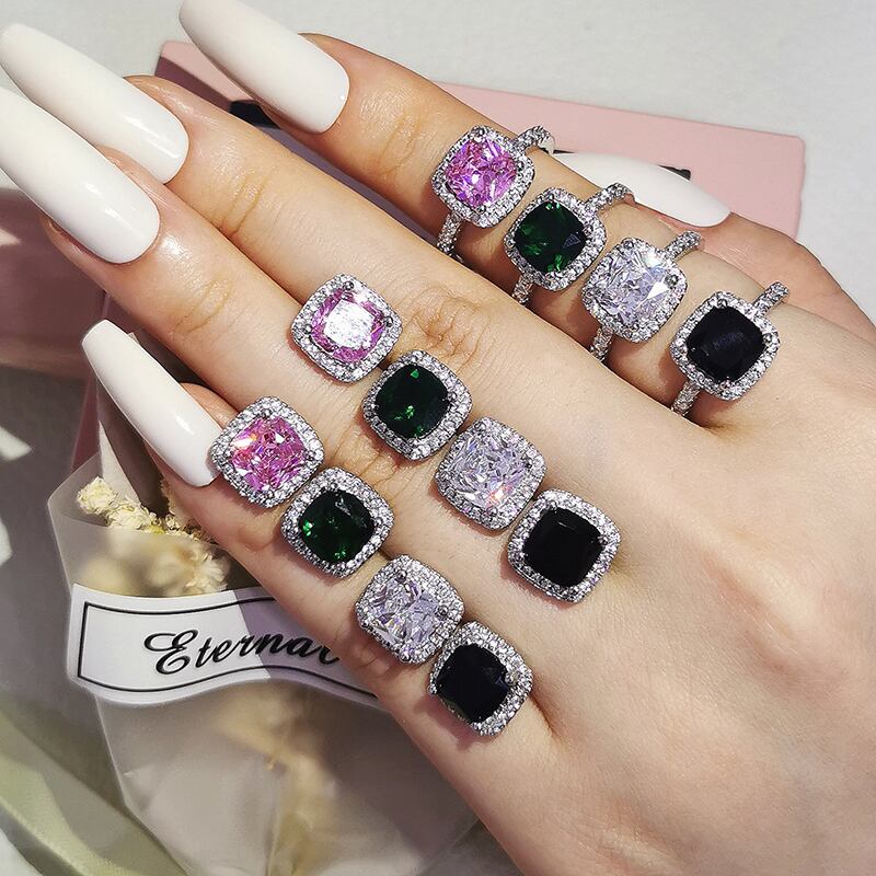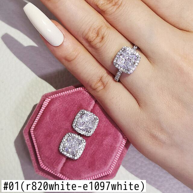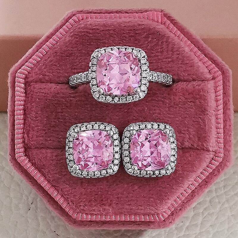 送料無料 インドドバイシルバーカラークッションCZジュエリーセット婚約指輪スタッドピアス女性パーティーギフトサイズ11,12,13J1099-ピンク イヤリング リング 銀 アクセサリー AE0011667173916176