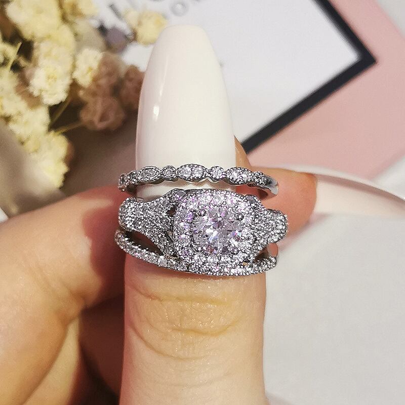 送料無料 2022シルバーカラー花嫁4ピーススタックスタックウェディングエンゲージリングセット女性バンドR5678 指輪 銀 アクセサリー AE00116630701557135