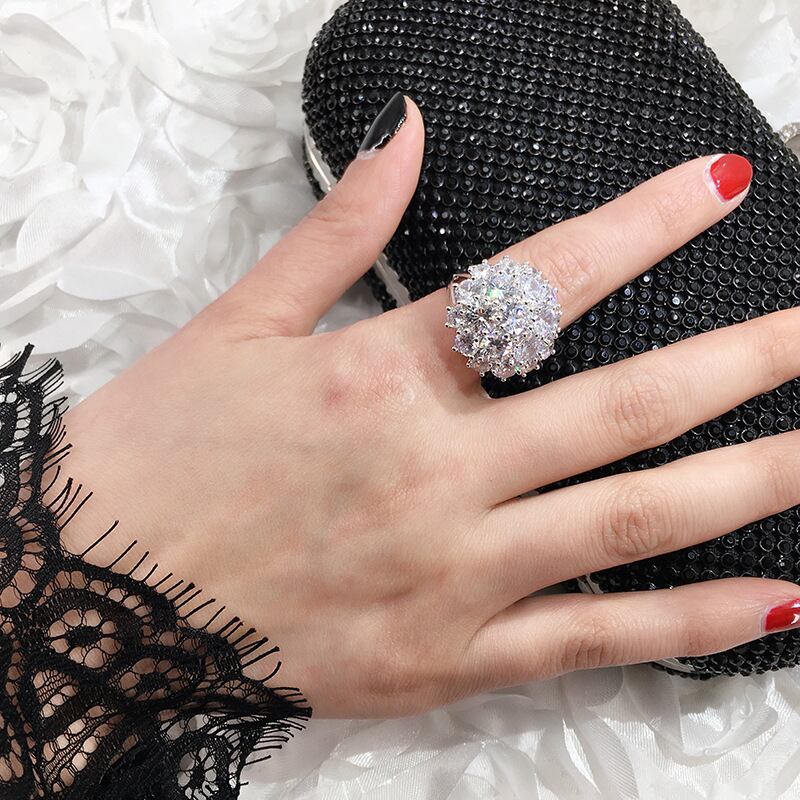 送料無料 2022年ラグジュアリーフラワーシルバーカラーデザイナー婚約指輪女性レディアニバーサリーギフトジュエリーR5625 リング フラワーデザイン 銀 アクセサリー AE00116657365761475
