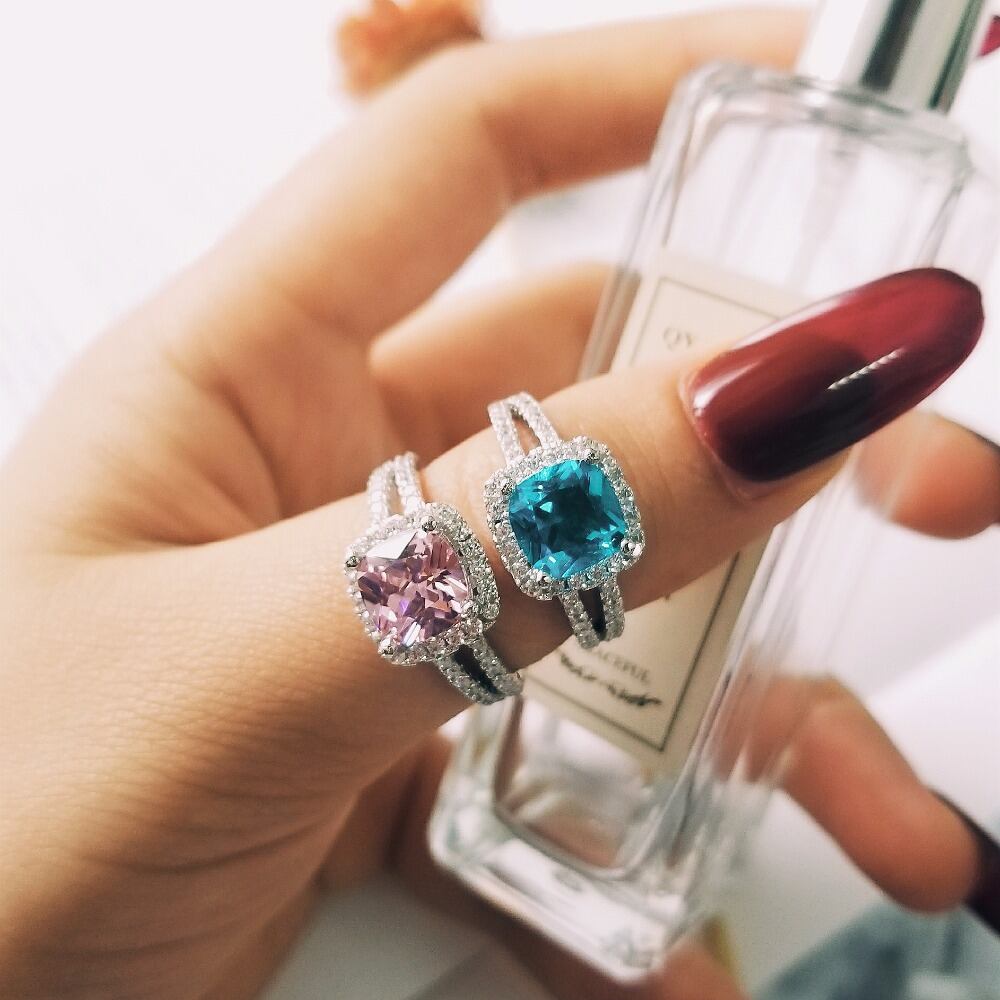 送料無料 シルバーカラーデザイナーエンゲージメントウェディングプロミスリングウーマンピンクブルーファッションフィンガーオリジナルデザインジュエリーR1507 指輪 銀 アクセサリー AE00116668035771881