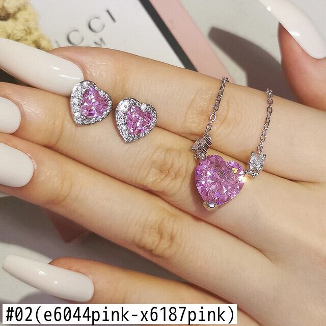 送料無料 2ピースパックシルバーカラー花嫁ジュエリーセットハート型スタッドピアスネックレスペンダントプロミスギフト女性J6339 レース イヤリング 銀 アクセサリー AE00116643197670676