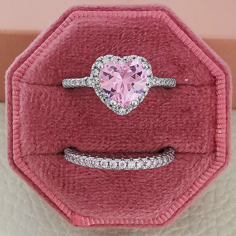 送料無料 シルバーカラー花嫁ハートカットキュービックジルコニア結婚指輪セット女性花嫁婚約ジュエリーバンドエタニティR6997-ピンク リング 銀 アクセサリー AE00116656663499812