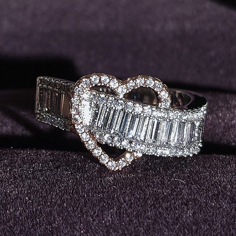 送料無料 2022ラグジュアリーローズゴールドシルバーカラーハートエンゲージリングレディースレディアニバーサリーギフトジュエリー 指輪 銀 アクセサリー AE00116612533219614