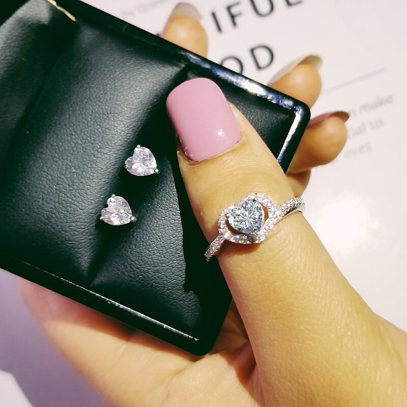 送料無料 2ピースパックシルバーカラー花嫁ジュエリーセットハロー婚約指輪ラウンドスタッドピアスウェディングJ4924 イヤリング リング 銀 アクセサリー AE00116654474566632