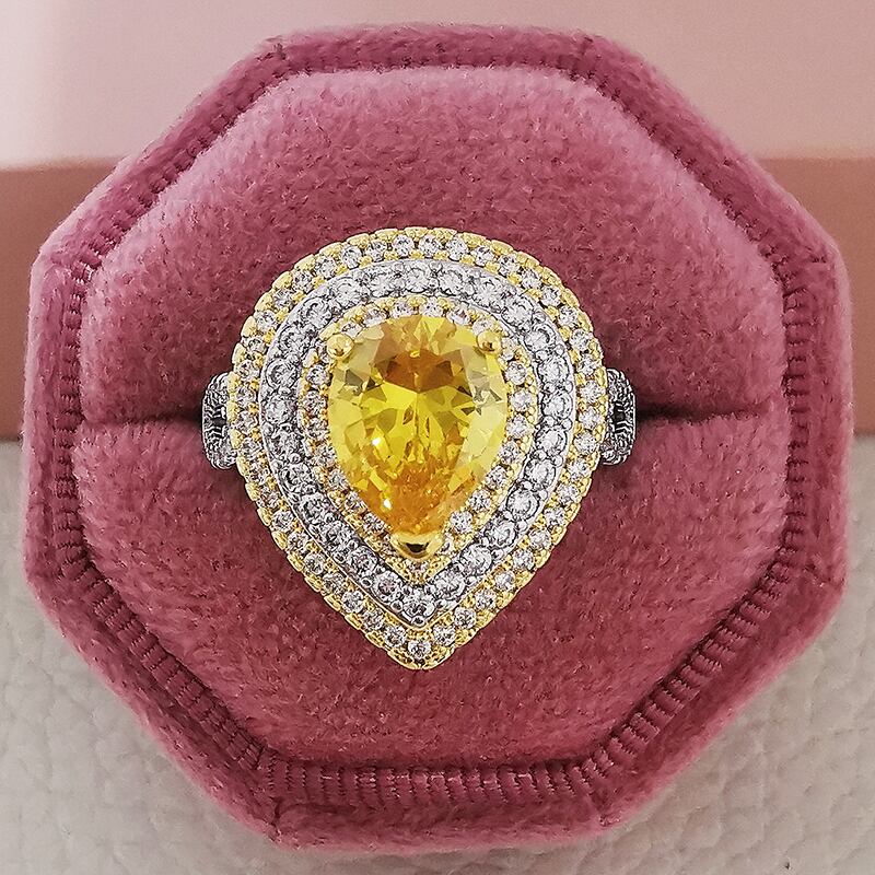 送料無料 2022年新しい高級イエローペアーシルバーカラーデザイナー婚約指輪女性レディアニバーサリージュエリー卸売ムーンソーR5087 リング 銀 アクセサリー AE0011665164683986