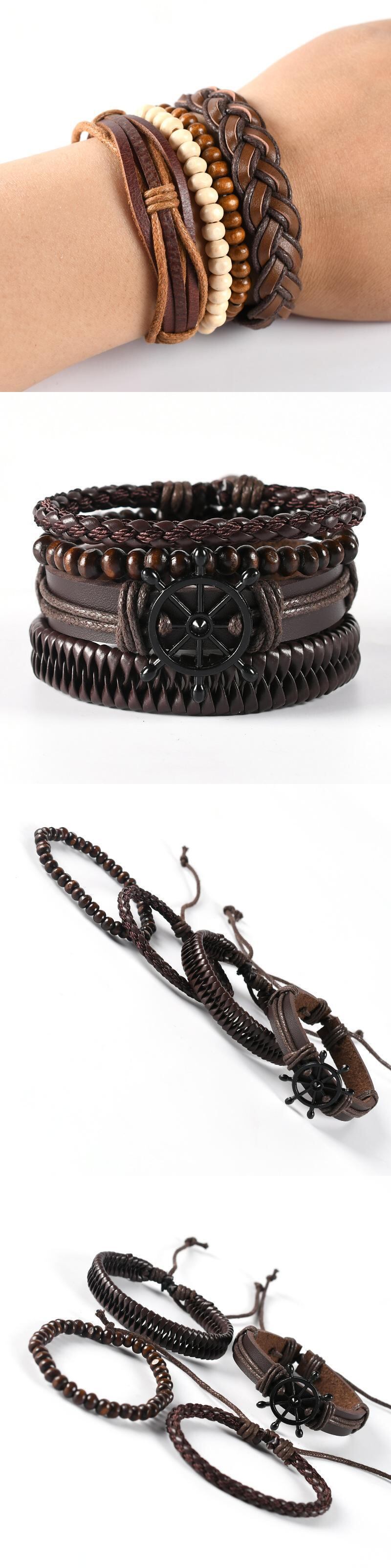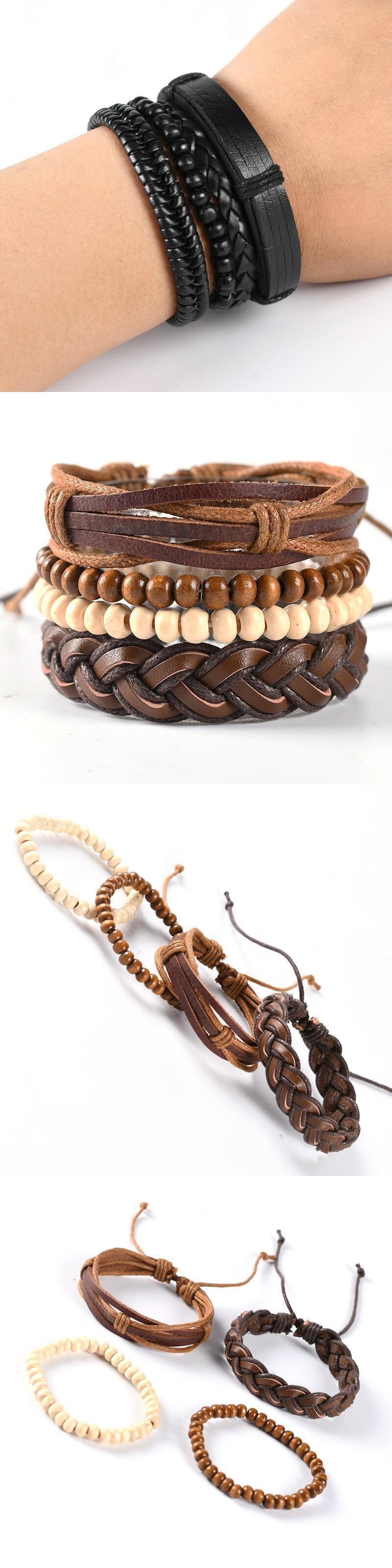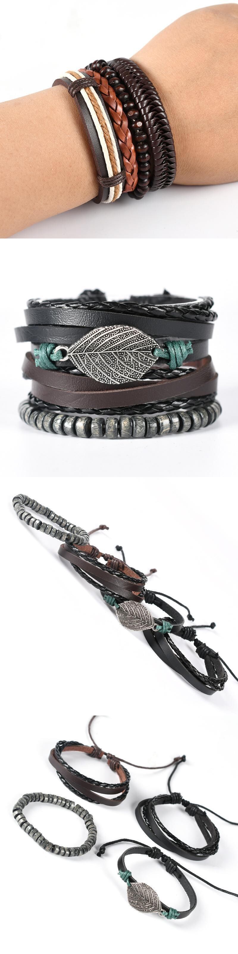 送料無料 ヴィンテージブラックビーズブレスレットメンズホロートライアングルレザーブレスレット&バングルマルチレイヤーワイドラップジュエリーS6676 ビンテージ アクセサリー AE00116616158521452