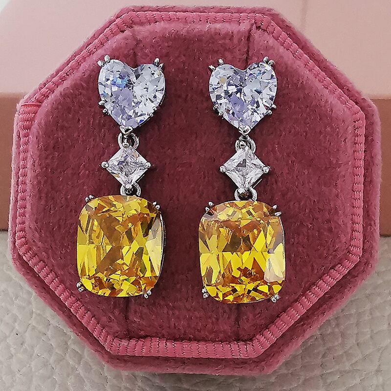 送料無料 2022年高級ピンクイエローカラークッションイヤリング女性結婚記念日ギフトジュエリーE6494 指輪 アクセサリー AE00116625578117229