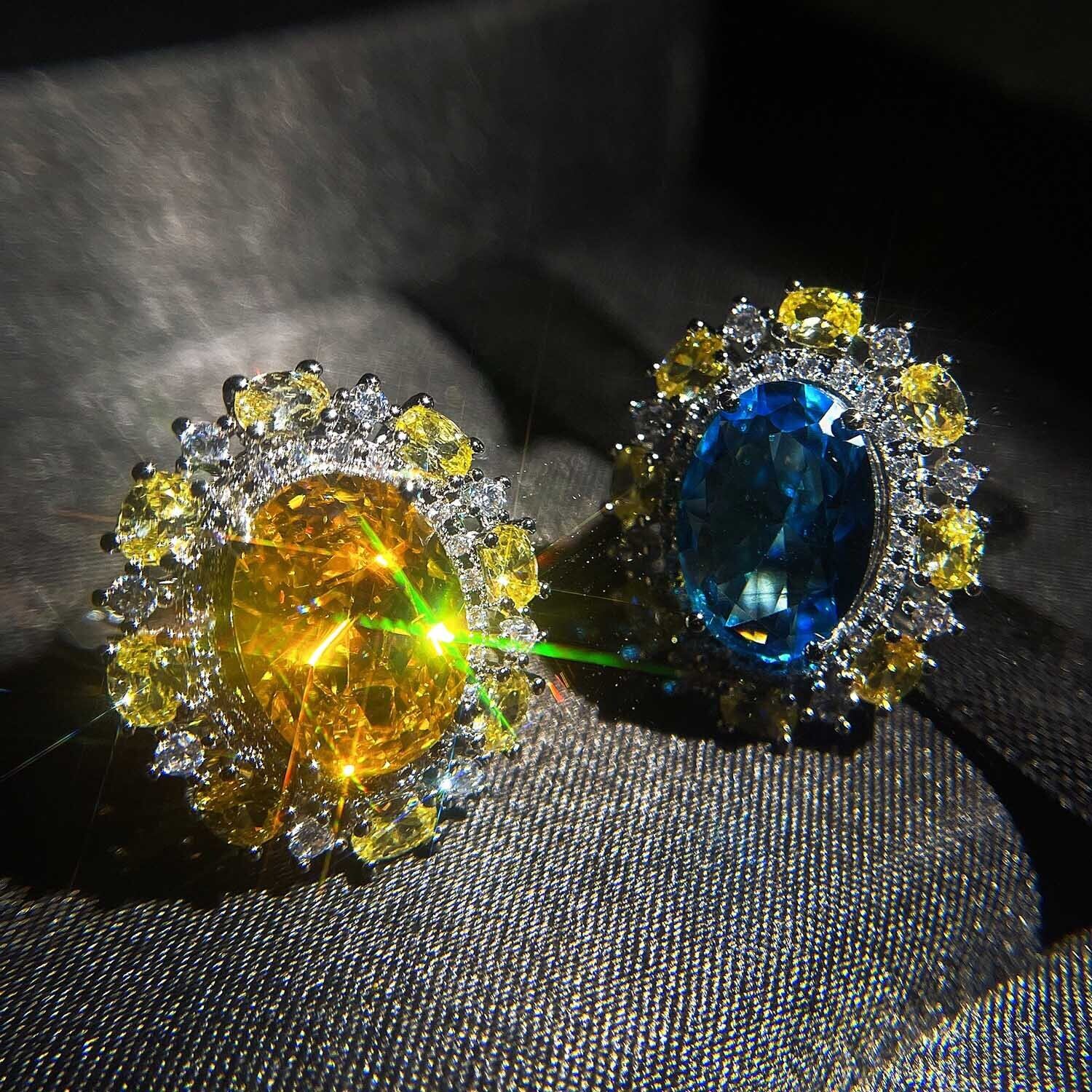 送料無料 2022ラグジュアリーブルーイエローカラーエンゲージリングウィメンズアニバーサリーギフトジュエリーR6424 指輪 アクセサリー AE00116643523891977