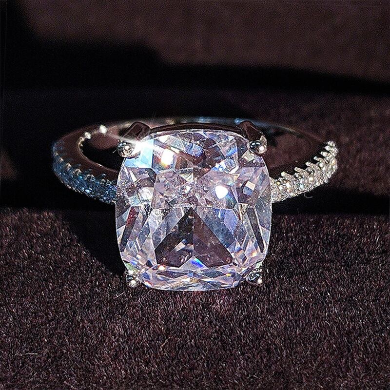 送料無料 クッションカットリアルシルバーカラーデザイナー薬指女性ジュエリーラグジュアリーウェディングエンゲージメントパーソナライズドR1953 リング 指輪 銀 アクセサリー AE00116629696385395