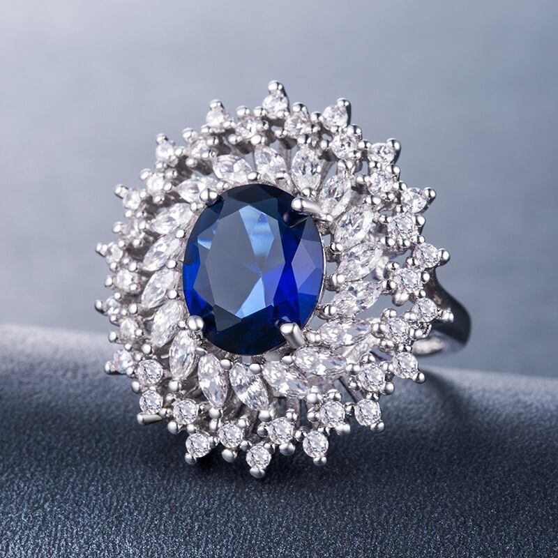 送料無料 2021ラグジュアリーブルーカラーオーバルシルバーカラーエンゲージリングウィメンズアニバーサリーギフトジュエリーR6167 指輪 銀 アクセサリー AE00116684269579783