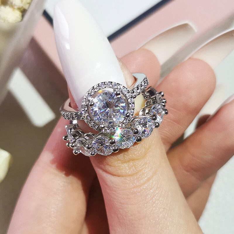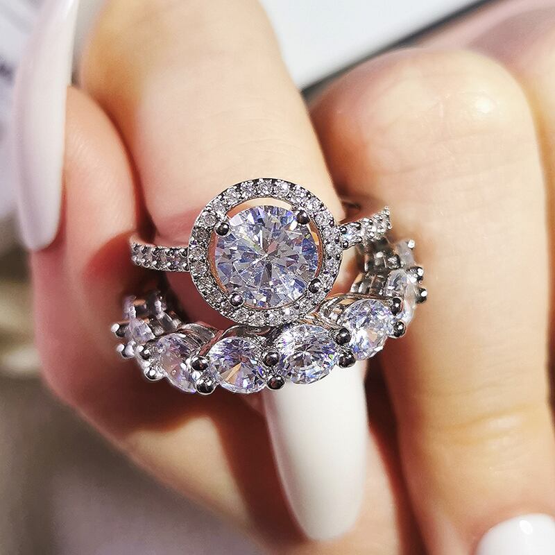 送料無料 シルバーカラー花嫁ウェディングリングセットバンドリング女性婚約ブライダルジュエリーフィンガーブラックフライデーR6239 指輪 銀 アクセサリー AE00116689738736301