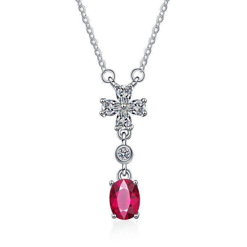 送料無料 2022年ラグジュアリーレッドカラーオーバルシルバーカラーネックネックネックウーマンアニバーサリーギフトジュエリーX6802 銀 アクセサリー AE00116668094714315