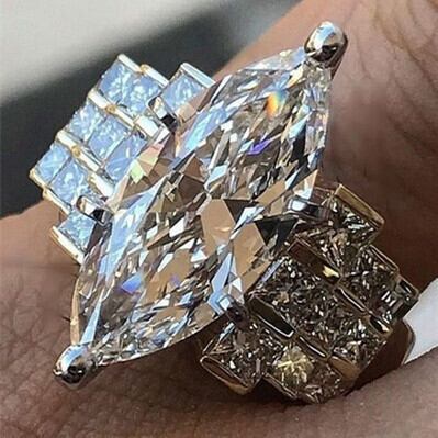 送料無料 シルバーカラーデザイナークリエイティブマーキスキュービックジルコニアエンゲージリング女性ウェディングパーティーギフトフィンガービッグジュエリーR4585 指輪 銀 アクセサリー AE00116635107235267