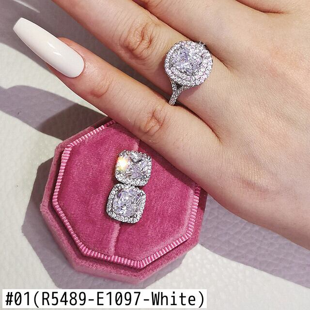 送料無料 2ピースパックシルバーカラー花嫁ジュエリーセットハロー婚約指輪ラウンドスタッドピアスウェディングクリスマスギフトパーティーJ6030 イヤリング リング 銀 アクセサリー AE00116684485316472