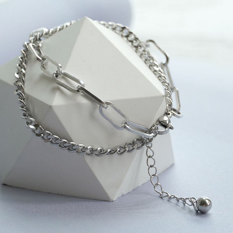 送料無料 手持ちのシルバーカラーダブルレイヤーハートチャームブレスレット&バングルウィメンズガールズバースデーウェディングパーティーS6669 銀 アクセサリー AE00116638448751450