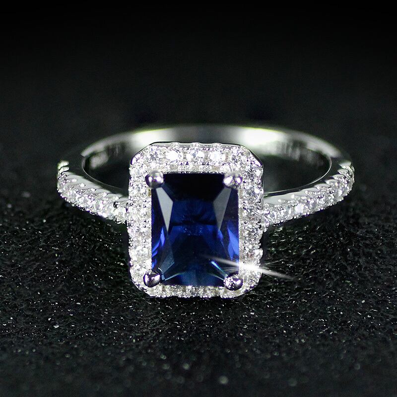 送料無料 925スターリングシルバーエンゲージメント結婚指輪女性リングセットバンドフィンガープロミスジュエリーブルーブライダル卸売R1997s 銀 アクセサリー AE00116691703991738