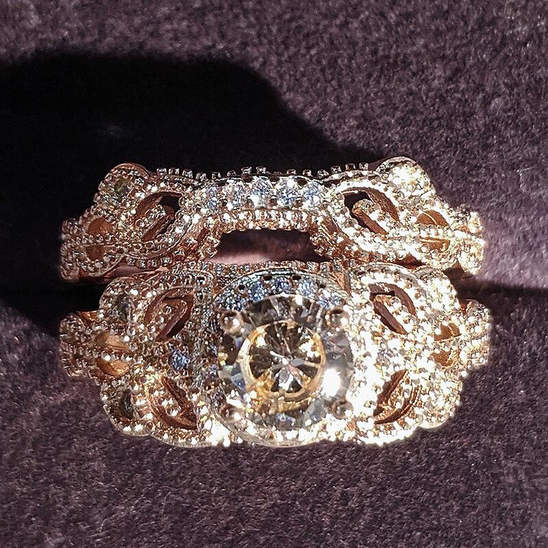 送料無料 2022年新しい高級ローズゴールドカラーハロー結婚指輪セット女性女性記念日ジュエリー卸売 リング アクセサリー AE00116613488696581